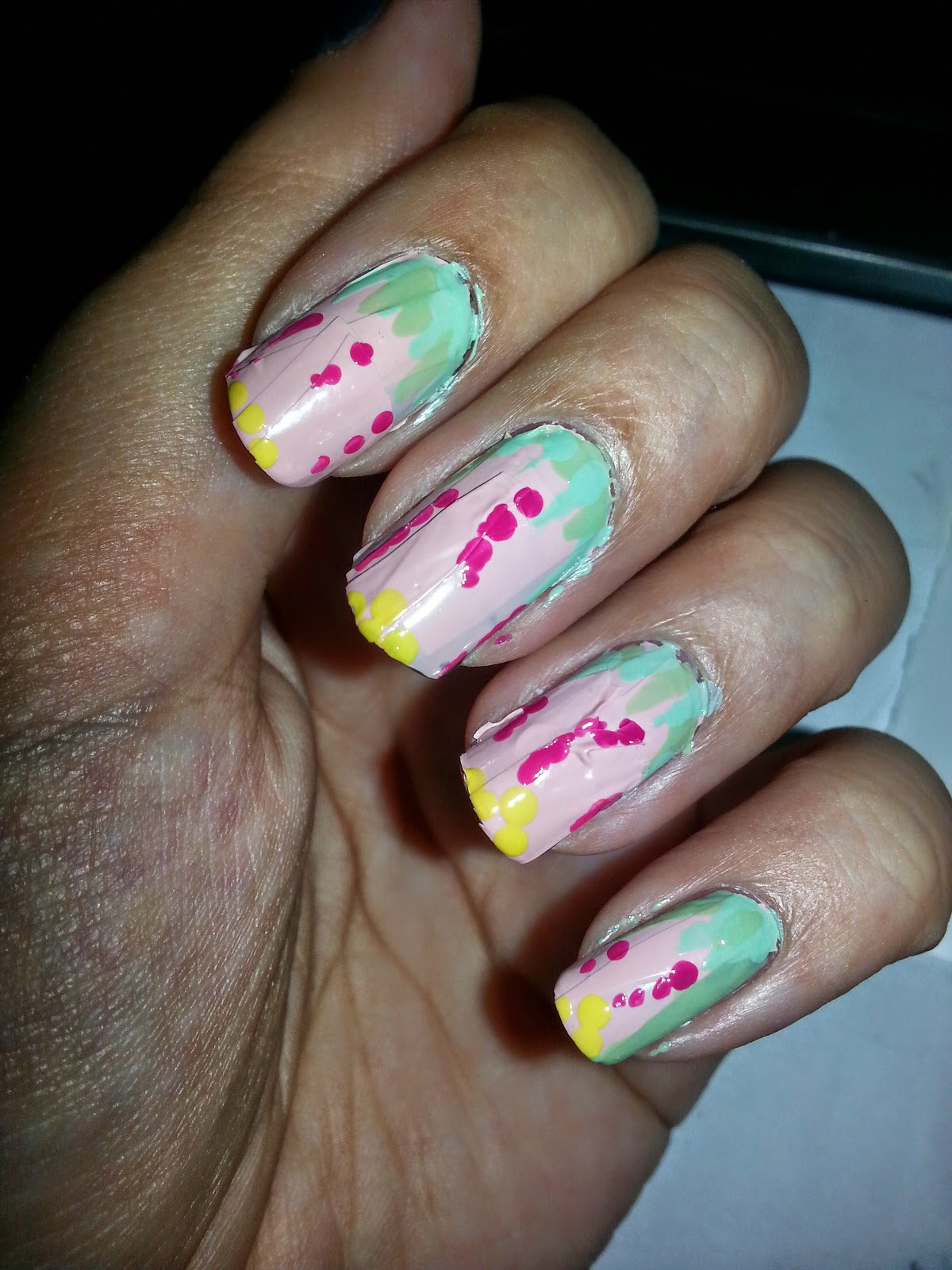 Well I went a little odd on this one and decided to play with stuff. I used dry polish to try and make a more layered look so that the petals wouldnt seem as flat as if they were just painted on. I'm not sure how much I like it but I knew I couldn't do a perfect rendition of the piece so I just decided instead to have a bit of fun with the prompt.